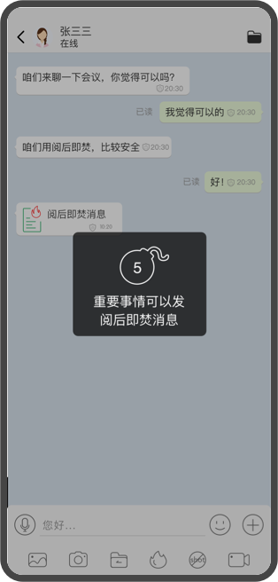 双方在线才可开启边聊边删,一次性对话
